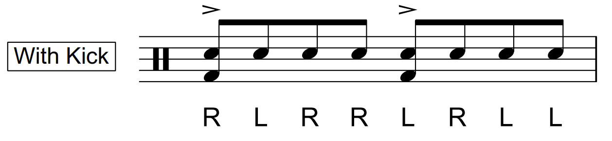 One of the best ways to move a drum rudiment to the set is to add a kick drum with it. In this lesson we're playing a Paradiddle at 60 BPM, adding a kick on all the down beats.